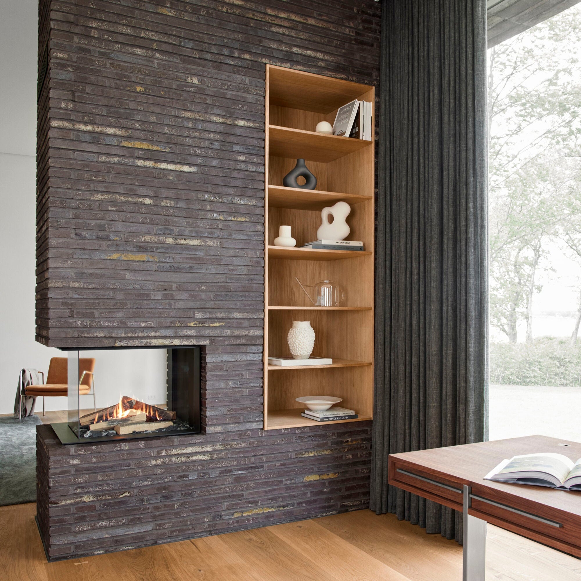 Hjemmets hjerte er uden tvivl køkkenet, hvor en dramatisk kombination af sort og egetræ skaber en markant kontrast. Den sorte granitbordplade og bagvæg med grønne marmordetaljer tilføjer en eksklusiv dybde, mens de massive skuffer i egetræ med klassiske fingertappede samlinger understreger Hanstholm Køkkens håndværksmæssige ekspertise. De grebsfrie fronter bidrager til et strømlinet og minimalistisk udtryk, der er lige så funktionelt, som det er æstetisk imponerende.