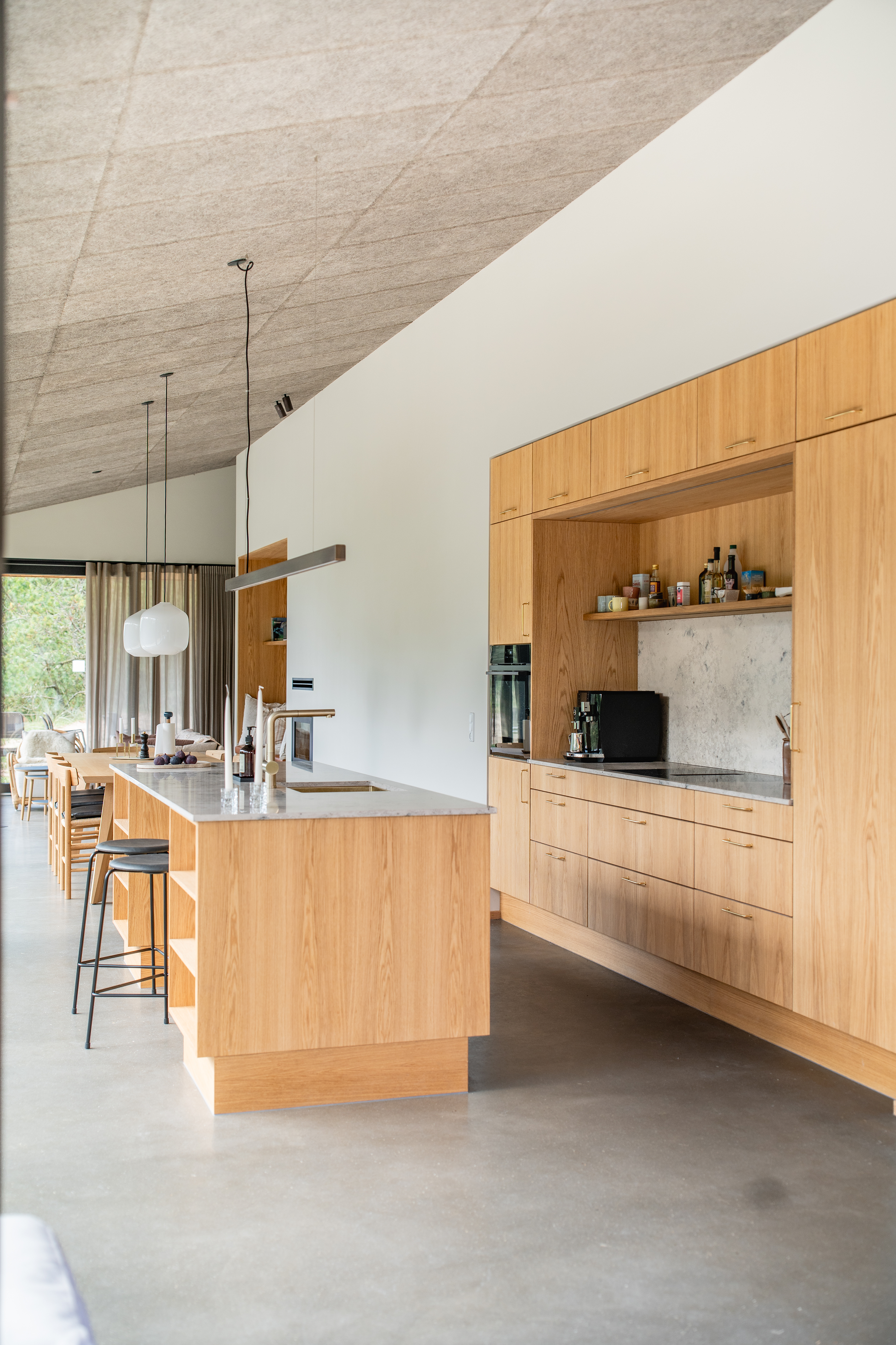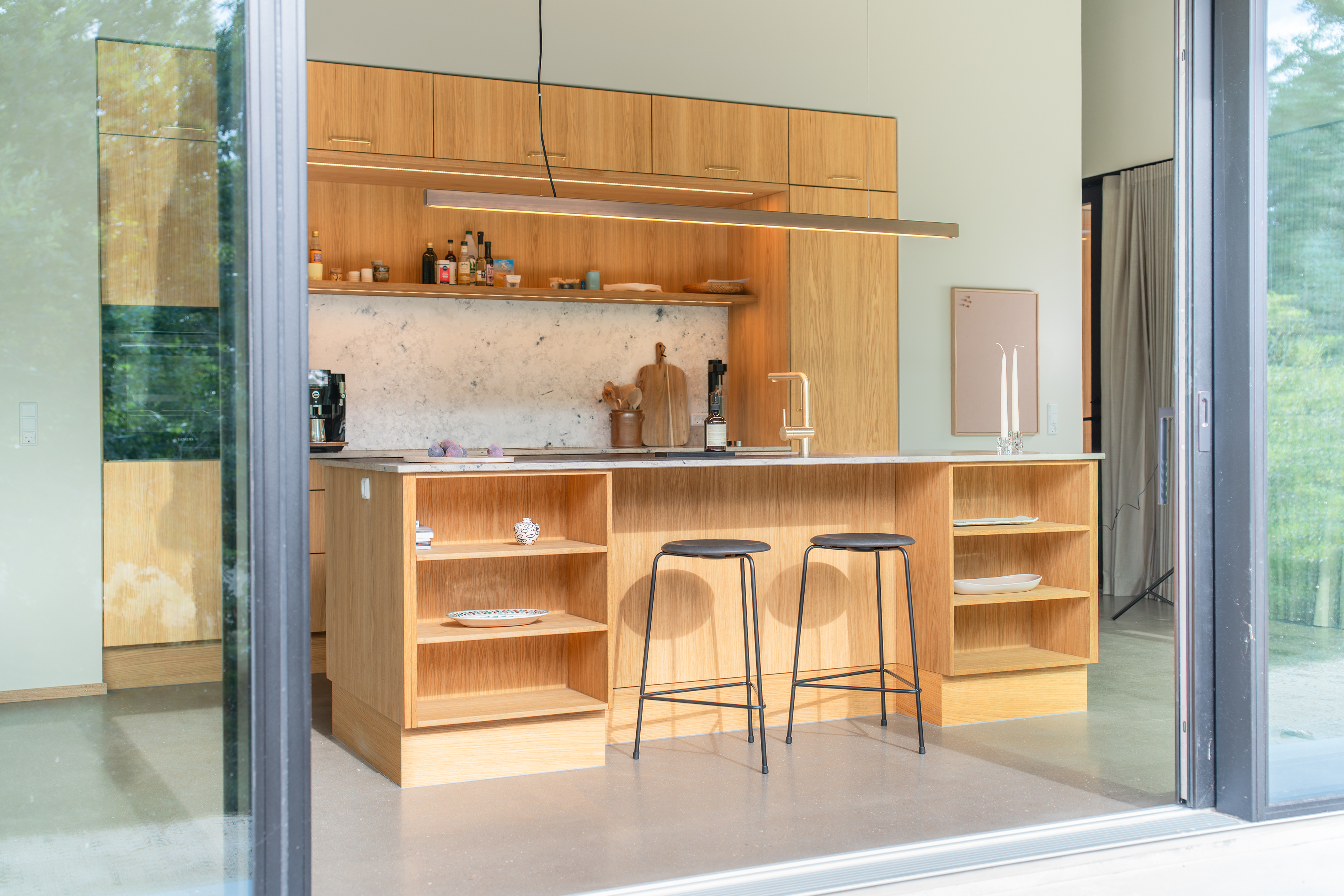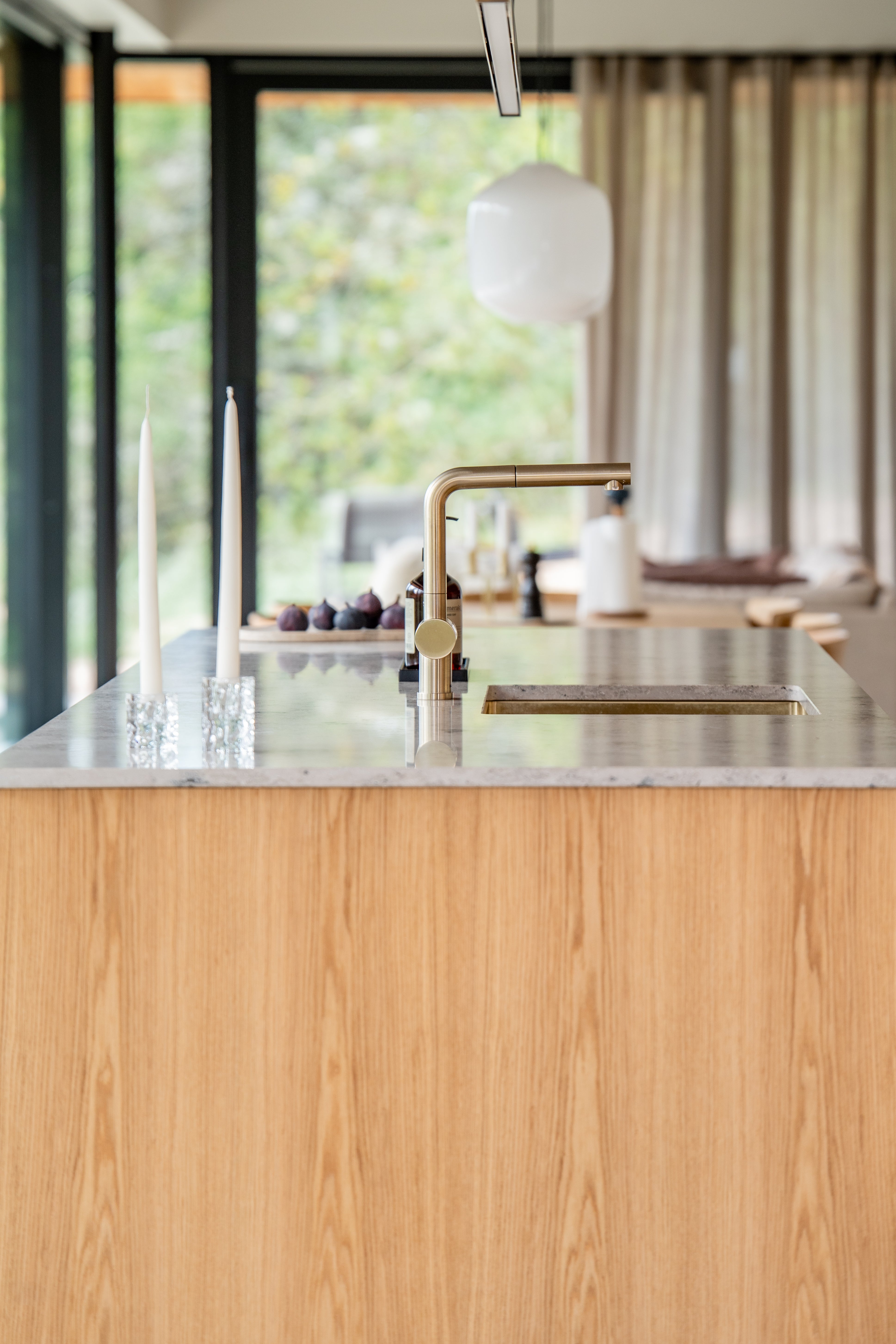 Et køkken i et sommerhus skal kunne mere end at rumme madlavning. Det skal føles som en forlængelse af naturen – roligt, varmt og tidløst.