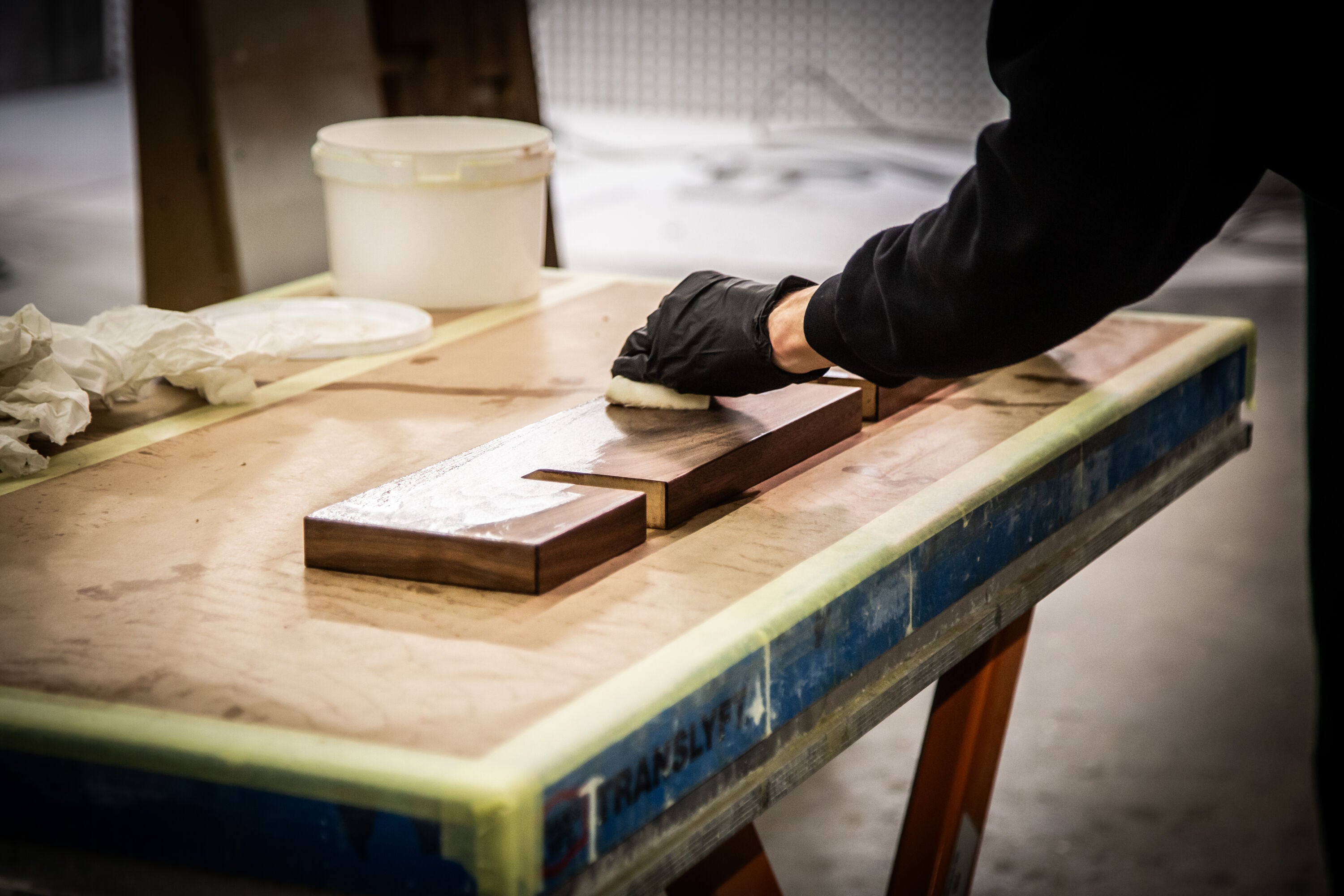 Mellemslibningen er måske den mest stille del af produktionen. Her høres kun lyden af sandpapir mod træ.