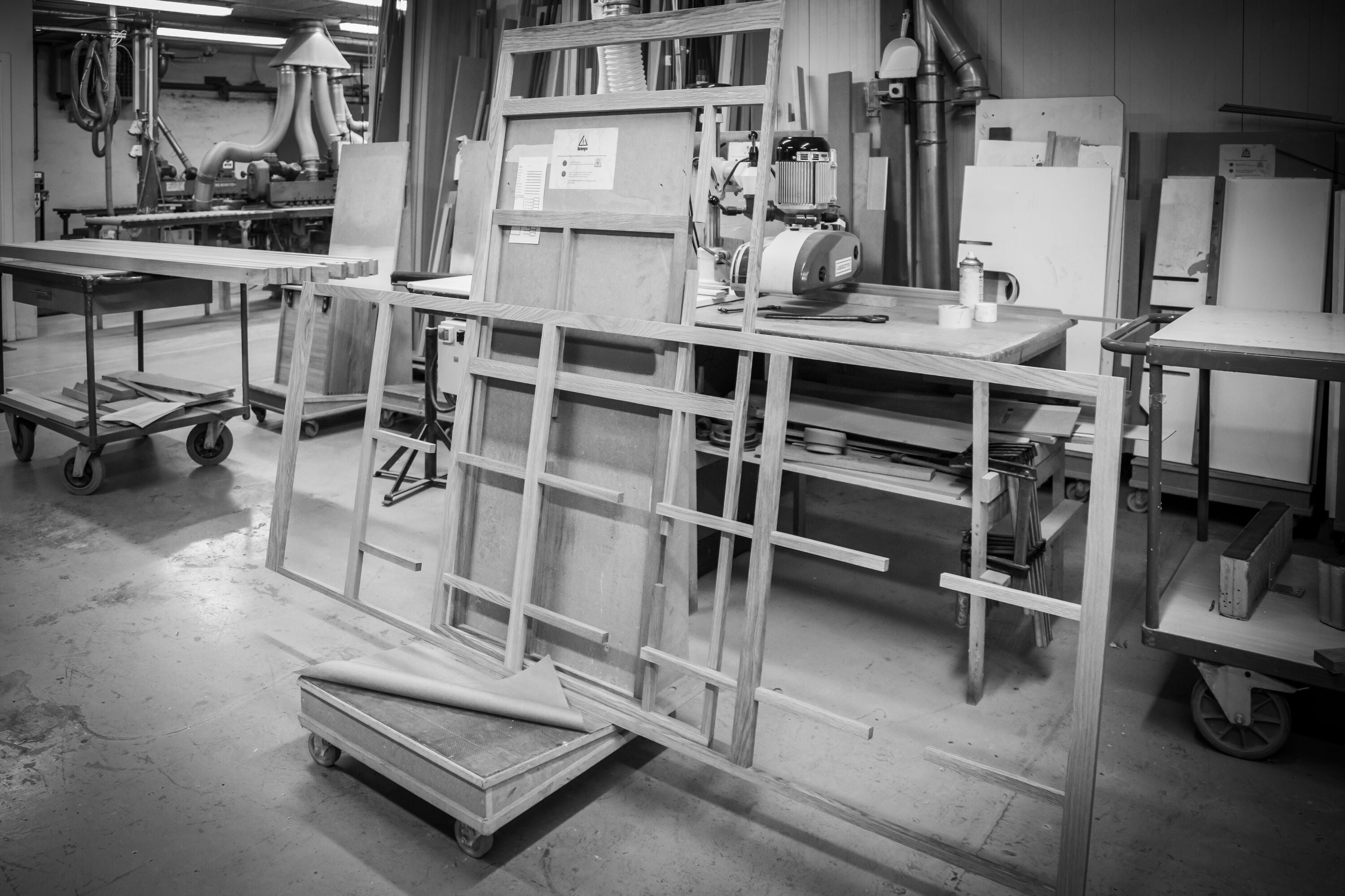 I specialafdelingen står mennesker, ikke maskiner, i centrum. Her bruges høvl, stemmejern og håndsav, når det er det, træet kræver. Rammerne formes til små møbler i sig selv – med varme, nøjagtighed og respekt.
