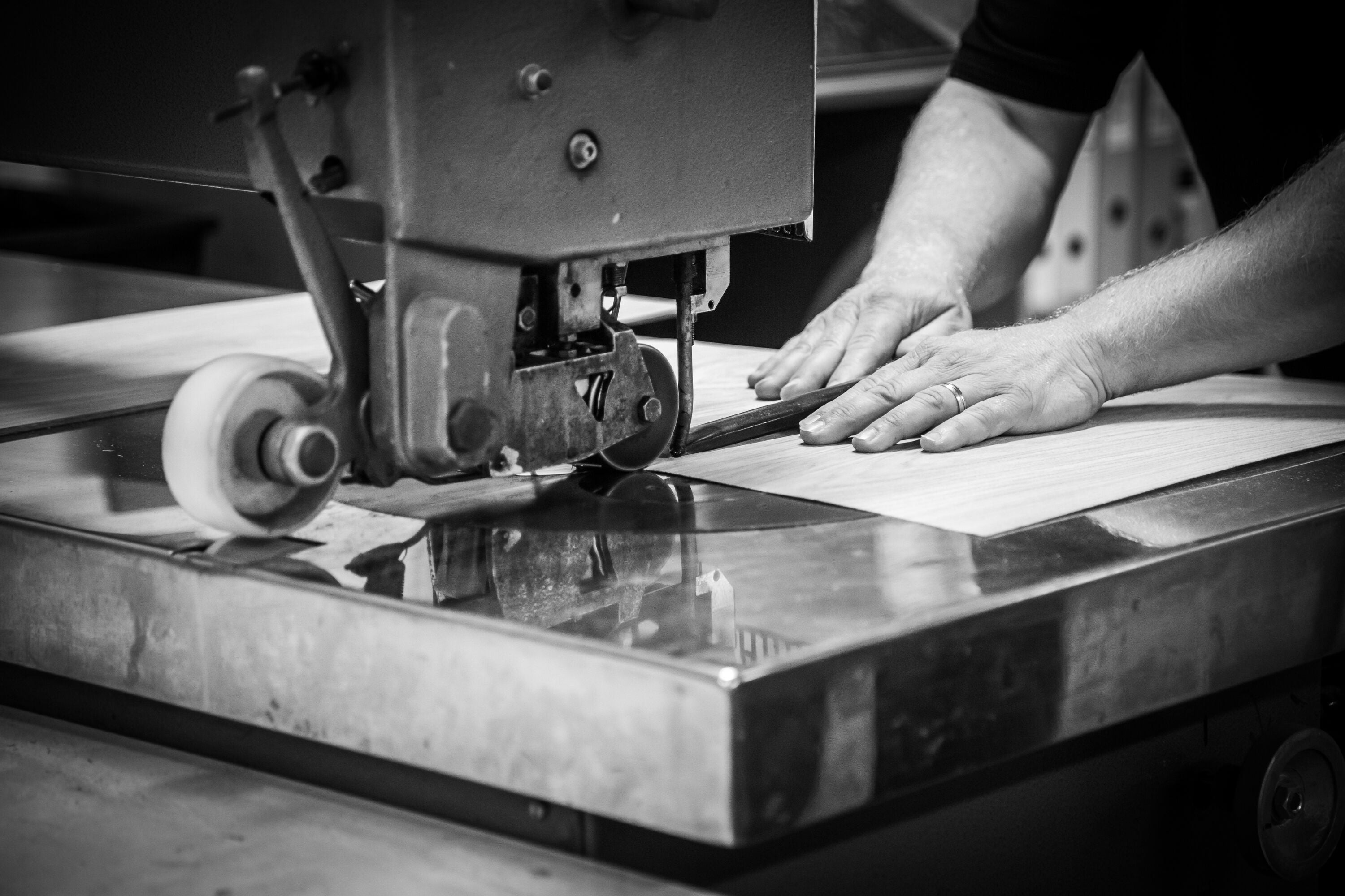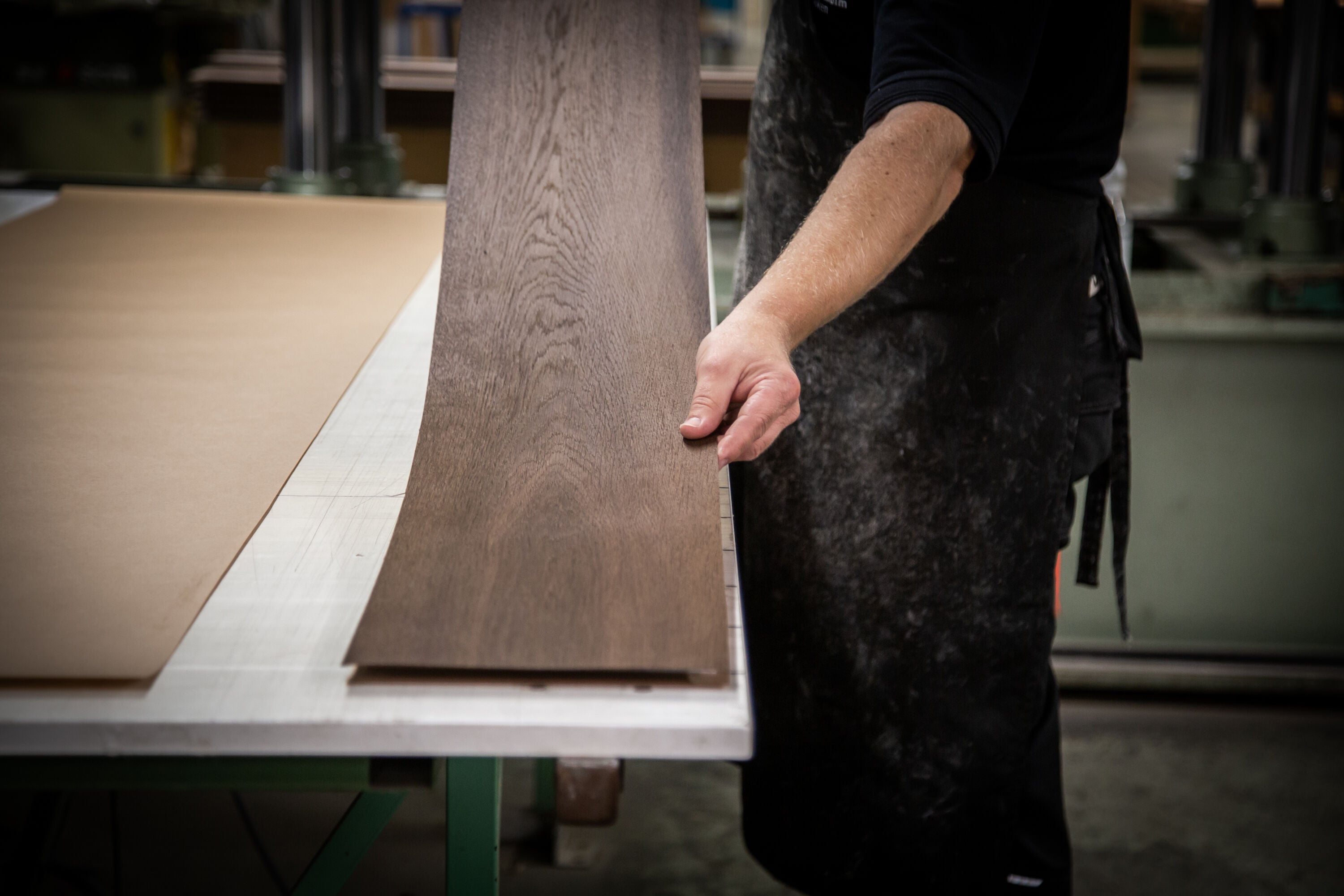 Vores finerspecialister arbejder med samme omhu som en skrædder. De kender fornemmelsen af, når to finerblade passer – som om de altid har hørt sammen. Det kalder vi at sy finer.