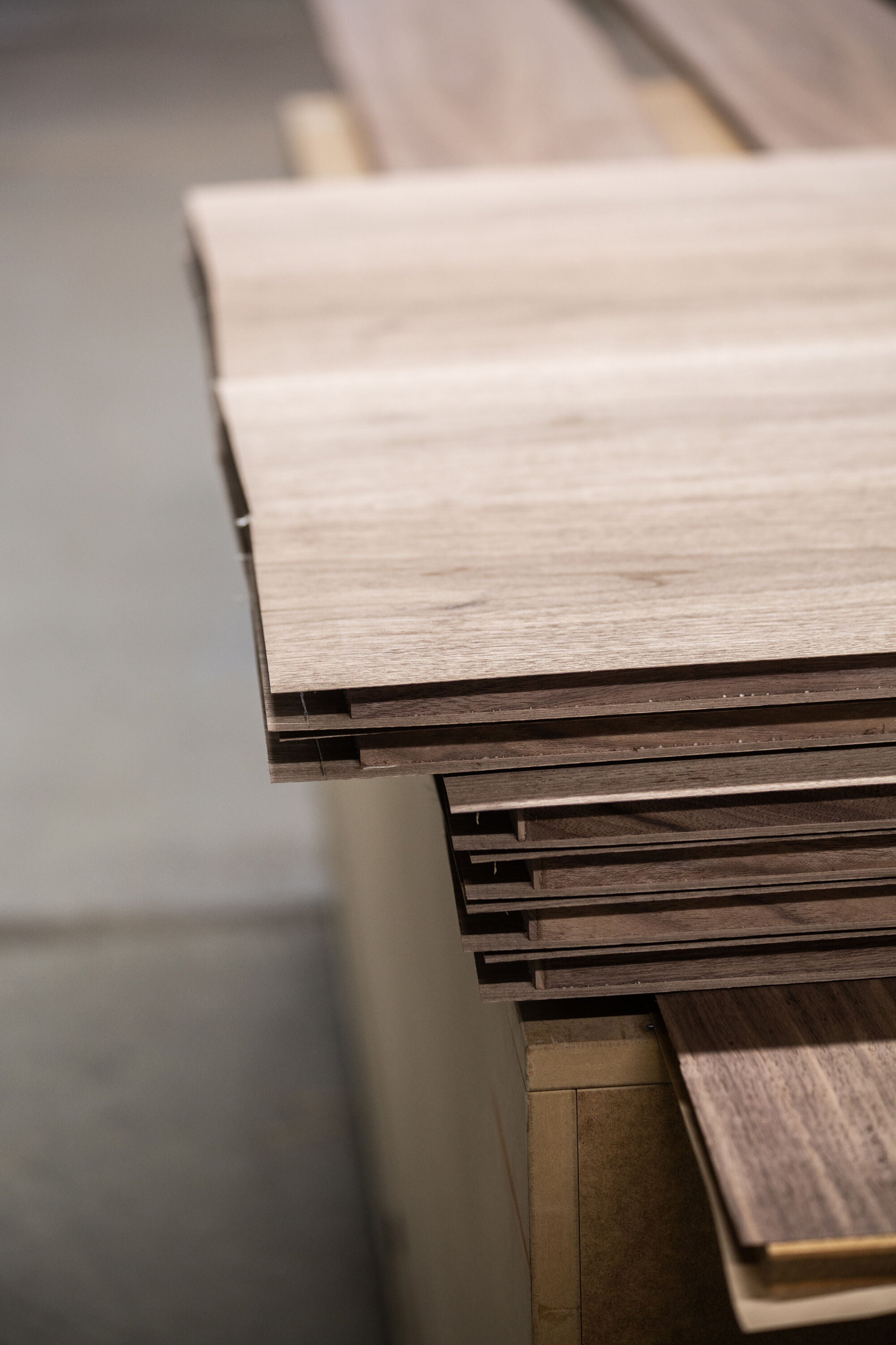 Vi udvælger fineren manuelt, plade for plade. Det kræver erfaring at se, hvordan et mønster vil udvikle sig, når det “sys” sammen med næste plade.